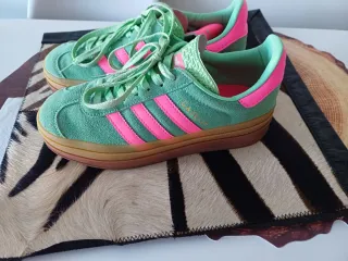 Zapatillas deportivas Adidas Gazelle Bold con un diseño llamativo. - Plataforma gruesa con efecto degradado. - Tres rayas laterales icónicas de Adidas. - Detalle del nombre 'Gazelle' en el lateral. 25 cm la plantilla