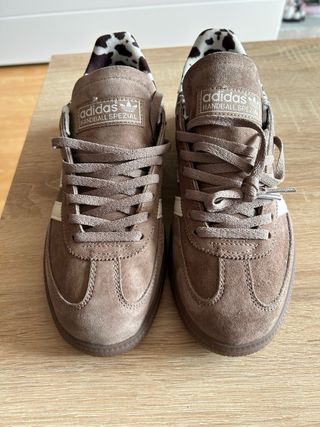 Zapatillas Adidas Handball Spezial en color marrón con un llamativo estampado de vaca en el interior. - Diseño inspirado en el modelo clásico. - Detalles de las tres rayas en color crema. - Material de ante.