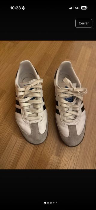 Zapatillas Adidas Samba clásicas en blanco y negro. Un diseño icónico para el día a día. Estan como nuevas - Parte superior de cuero. - Detalle de las tres rayas. - Suela de goma.