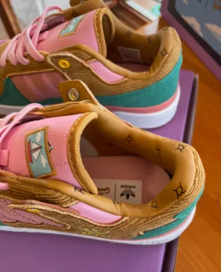Zapatillas Adidas inspiradas en Los Simpson. Un diseño único y llamativo. - Combinación de colores vibrantes. - Detalles de corduroy y ante. - Logo de Adidas y The Simpsons.
