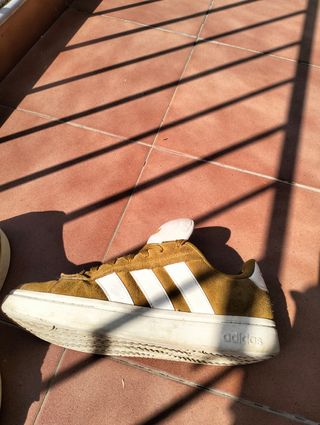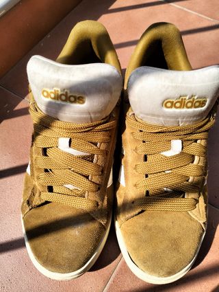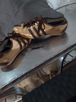 Vendo un par de zapatillas Adidas. Son de color dorado y marrón, con un diseño elegante y deportivo. - Ideales para lucir un estilo único. - Están en buen estado.