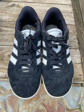 Zapatillas deportivas Adidas en color negro con detalles blancos. - Diseño clásico con las tres franjas. - Cierre con cordones. - Material exterior de ante.