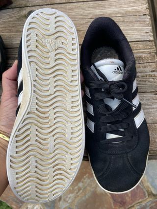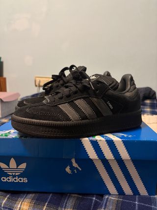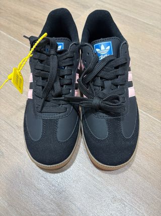 Zapatillas Adidas Samba en talla 39 1/3. - Diseño clásico. - Combinación de negro y gris. - Material de ante Son practicamente nuevas, las compre hace 1 año, las use 1 vez que sali a la calle, un trayecto corto y no las volvi a usad, me quedaban un poco pequeñas. Se puede grabar video o enviar mas fotos si se pide.