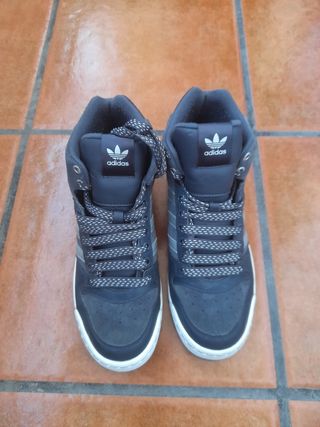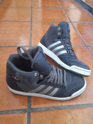 Zapatillas altas de la marca Adidas Originales. - Diseño en color negro y gris. - Cierre con cordones. Muy poco uso. En una de la solapa se ha despegado un poco la tela..