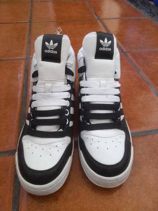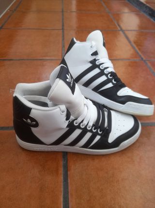 Zapatillas altas de Adidas original en color blanco y negro.Con cordones. Muy poco uso.