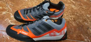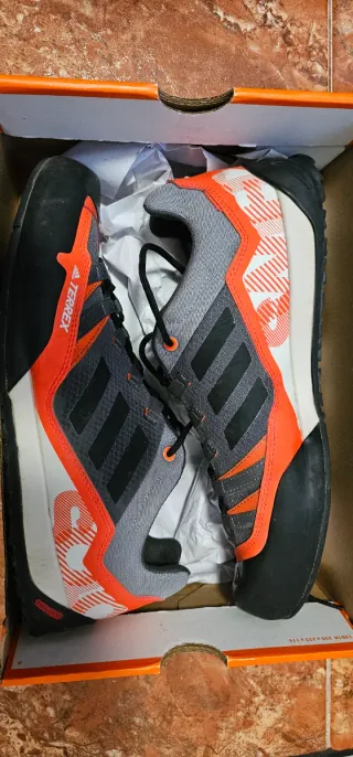 Zapatillas deportivas Adidas Terrex en color gris y naranja. - Diseño deportivo. - Marca Adidas Terrex.