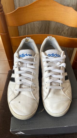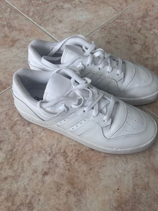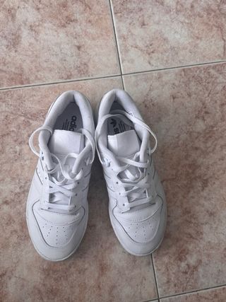 Zapatillas deportivas Adidas de color blanco. - Diseño clásico y versátil. - Cierre con cordones. - Detalle de las tres rayas icónicas de la marca. Utilizadas solo una vez. Las vendo por error en la talla.