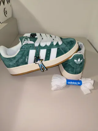 Zapatillas Adidas Campus de color verde, en perfecto estado. Ideales para un look casual y cómodo. - Suela blanca. - Material de ante. - Talla [Añadir talla].