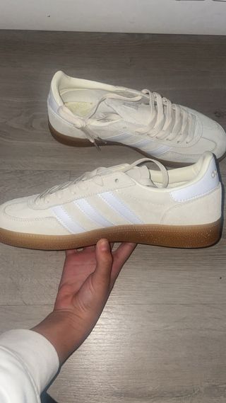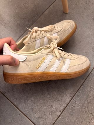 Zapatillas Adidas Specialle en color beige y blanco. Un clásico para el día a día. - Diseño retro. - Detalle de las tres franjas en los laterales. - No las uso por eso las vendo.