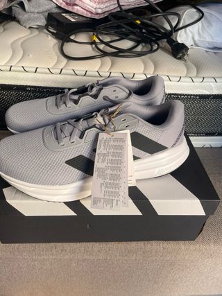 Zapatillas de la marca Adidas en color gris. Perfectas para el día a día. - Cierre con cordones. - Diseño moderno y cómodo. Talla 43 1/3 *Sin estrenar. Las vendo porque me equivoqué de talla.