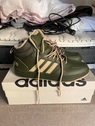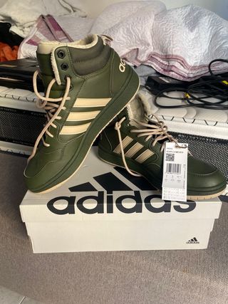 Zapatillas Adidas nuevas con etiqueta Vendo botas Adidas originales en color verde militar con franjas beige, totalmente nuevas y sin usar, aún con etiqueta y caja original. Modelo muy cómodo, con interior cálido ideal para el invierno. Perfectas para uso diario o para un estilo urbano casual.