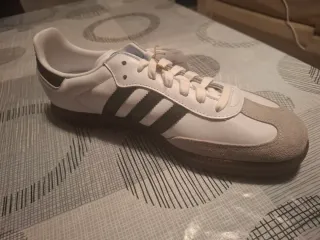 Zapatillas Adidas Samba OG en color blanco. 🏷️ Marca / Modelo: Adidas Samba OG 👟 Estado: Nuevas, sin uso 📏 Talla: 39 EU 💰 Precio en tienda: 120 € 🚀 Envío: 24–36 h 📦 Incluye: Caja y envoltorio original 📋Características: - Parte superior de cuero. - Detalle de gamuza en la puntera. - Suela de goma. - Tres rayas características de Adidas.