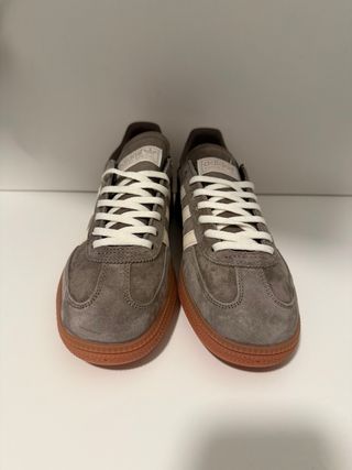 Zapatillas Adidas de ante y tela en tonos beige y gris. SON ORIGINALES - Diseño de tres rayas. - Suela de goma. - Cierre de cordones.