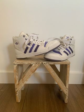 Zapatillas ADIDAS altas blancas y moradas Unisex.