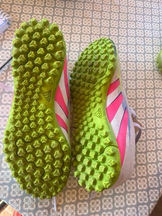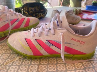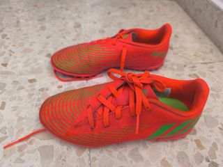 Vendo zapatillas Adidas Predator para fútbol sala, talla 33. Están en buen estado, sin roces ni suelas desgastadas. - Modelo Predator. - Multitacos. - Ideales para jugar en superficies de césped artificial.