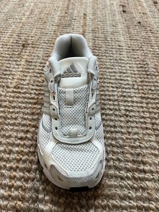 Zapatillas deportivas Adidas con un diseño moderno y cómodo. - Combinación de colores plateado y blanco. - Materiales de malla transpirable.
