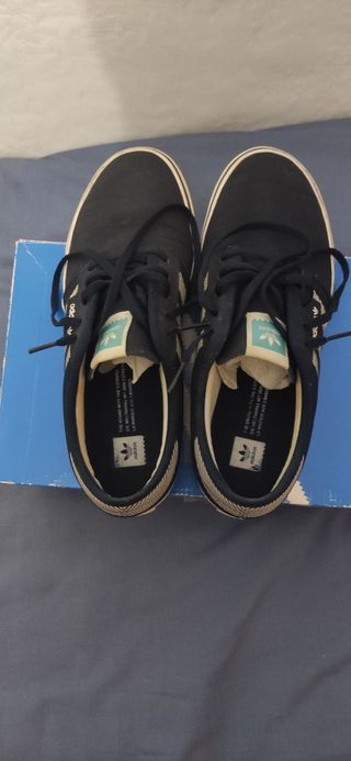 Vendo un par de zapatillas Adidas negras. Son de cuero y ante, y están en buen estado. - Modelo clásico. - Cómodas y elegantes. - Ideales para el uso diario.