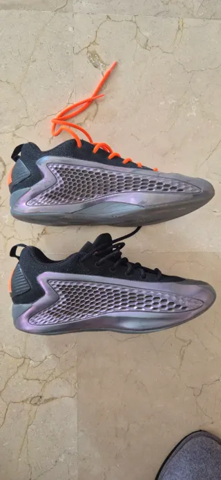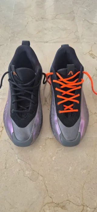 Zapatillas deportivas Adidas Anthony Edward. Baloncesto. - Color negro y naranja. - Talla 42.5. Son originales. Tiene signos de desgaste en suela y roces por el exterior. El interior esta muy buen estado. Se compraron en julio 2025. Pero se han usado en pistas exteriores. Ver fotos. Se vende por no poderse usar por quedarse pequeñas.