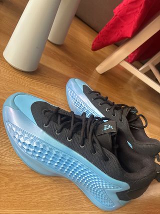 Zapatillas deportivas de baloncesto con un diseño moderno y llamativo. - Parte superior de malla transpirable. - Suela de goma para un buen agarre. - Detalle de panal en la mediasuela. Me las compré en Londres, el precio del ticket está en libras. Me las puse dos veces pero me quedan pequeñas. No vienen con la caja, pero tengo el ticket. Tiene una pequeña raya en el lateral, por eso descuento 20€