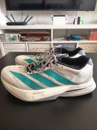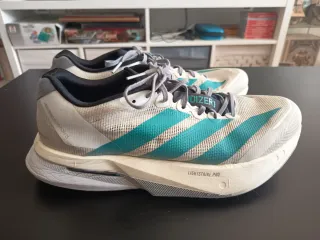 Zapatillas de running Adidas Adizero Boston 13. - Diseño ligero y transpirable. - Tecnología Lightstrike Pro en la mediasuela. - Detalles en color verde azulado. - Tiene un pequeño desgaste puntera pie izquierdo.