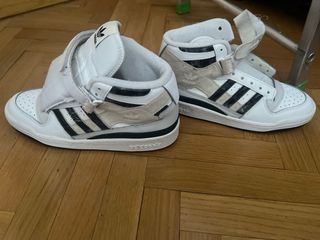 Zapatillas deportivas Adidas num 48 - Color azul y blanco. - Cierre con cordones y velcro. Tienen dos desperfectos como se ve en la foto, en la parte interior atrás y una de ellas cerca de los cordones. Las suelas están todavía perfectas.
