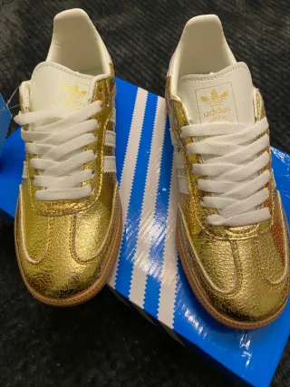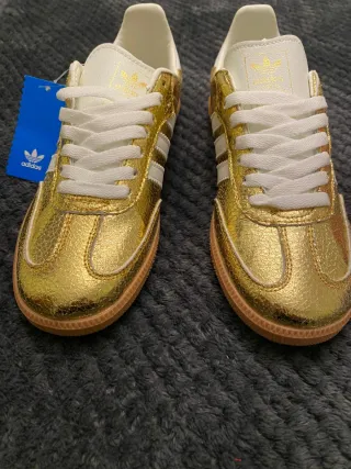 Zapatillas Adidas Samba OG Gold en color dorado metálico, un modelo icónico y muy tendencia 🔥 Perfectas para looks urbanos, street style o outfits más especiales. ✨ Características: ✔️ Modelo Samba OG ✔️ Color dorado metalizado súper exclusivo ✔️ Talla 38 ✔️ Nuevas a estrenar, sin uso ✔️ Con etiquetas originales ✔️ Suela gum clásica ✔️ Detalles en blanco y logo dorado Un modelo difícil de encontrar, ideal tanto para uso diario como para colección. Quedan espectaculares puestas 😍 📦 Entrega rápida 💬 Respondo rápido a mensajes 🚫 No cambios Adidas samba, samba og, samba gold