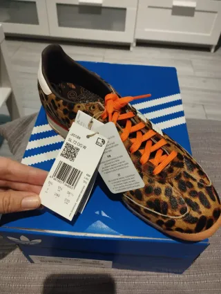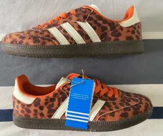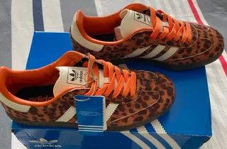 Zapatillas Adidas Samba OG Leopard / Animal Print, un modelo súper exclusivo y tendencia absoluta 🔥 Perfectas para quien busca un look diferente y con personalidad. ✨ Detalles: ✔️ Modelo Samba OG ✔️ Estampado leopardo / animal print ✔️ Talla 38 ✔️ Nuevas a estrenar ✔️ Con etiquetas y caja ✔️ Cordones naranjas y detalles en blanco ✔️ Suela clásica Samba en color marrón Muy difíciles de encontrar en esta talla. Ideales para street style, outfits casuales o darle un toque especial a cualquier look
