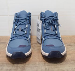 - Zapatillas deportivas y de senderimos tipo bota, marca Adidas, modelo Terrex, en color azul y blanco, de la talla 36,5. Válido para niños y niñas. - Ajuste regular, cierre con cordones, parte superior de tela con revestimientos de material sintético, lengüeta reforzada, herramienta de medición adiFIT(R) impresa en la plantilla para un ajuste perfecto y entresuela de EVA. - Nuevas, a estrenar, con etiquetas.