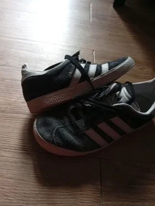 Vendo un par de zapatillas Adidas para hombre. Son de color negro y están en buen estado. - Material de ante. - Suela de goma.