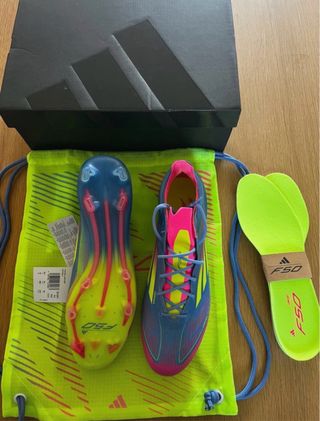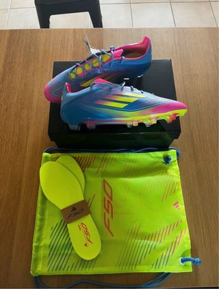 Botas de fútbol Adidas F50 Elite con un diseño vibrante. - Originales. - La etiqueta de Adidas que va en la zapatilla se envía, pero no va atada a la bota como en la imagen. - Solo han sido probadas. - Incluye bolsa de tela para guardarlas y caja cartón. - Incluye plantillas adicionales.