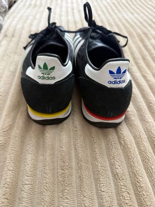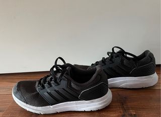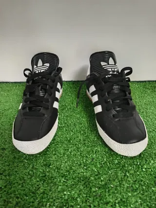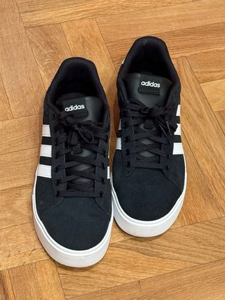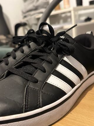 Zapatillas deportivas Adidas en color negro con detalles blancos. - Diseño clásico de tres rayas. - Suela blanca. - Cierre con cordones. puestas en una ocasión