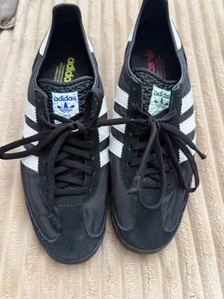 Zapatillas Adidas Samba en excelente estado, casi nuevas. Un clásico atemporal para tu día a día. - Diseño icónico con las tres franjas. - Combinación de colores negro y blanco. - Suela de goma para mayor durabilidad. - Talla 39 Están como nuevas, un solo uso‼️ 🔴 Más artículos en mi perfil. 📤 Envío rápido. Ref. A86.00