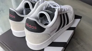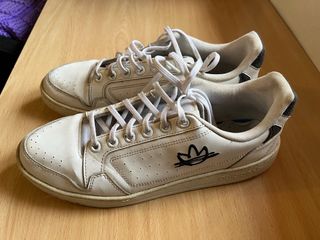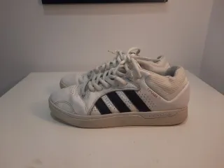 🔥 Modelo retro icónico con el trébol bordado en negro y detalles en gris. Perfecto para un look casual o streetwear. Detalles: • Marca: Adidas Originals • Color: Blanco con logo negro y talón gris • Estado: Usadas pero en buen estado. Algo de suciedad superficial y desgaste natural en suela y bordes (fotos reales). Nada roto ni descosido. • Talla: [Indica tu talla aquí, ej. 42 EU] • Material: Piel sintética + suela de goma • Cordones: Originales, en buen estado ✅ 100% ORIGINALES – Compradas en tienda oficial. 👟 Cómodas y con estilo vintage, ideales para diario.