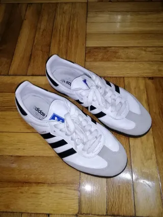 Zapatilla Adidas Samba blancas mujer talla 38. Son originales, compradas en el corte ingles por 120€ y vienen en su caja original. Las vendo por error de talla. Usadas 12 veces pero en muy buen estado