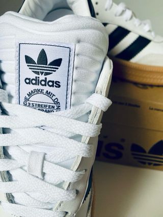 Zapatillas deportivas de cuero de la marca Adidas en blanco y negro. Perfectas para el día a día. - Diseño clásico con las tres rayas. - Cierre con cordones. - Detalle de logo en la lengüeta.