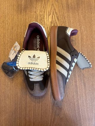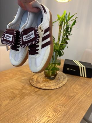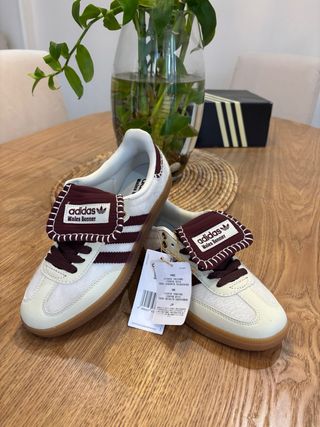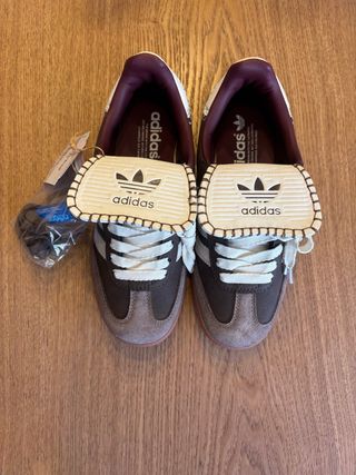 Zapatillas Adidas Samba en colaboración con Wales Bonner. Un diseño único con detalles distintivos. - Parte superior en ante y piel. - Detalles de las tres rayas en burdeos. - Suela de goma. - Cierre de cordones.