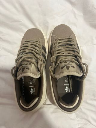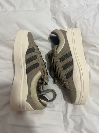 Zapatillas Adidas Campus en tonos beige y marrón. - Diseño clásico con las tres rayas. - Suela de plataforma. - Cierre de cordones.