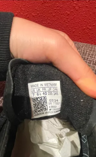 Zapatillas deportivas Adidas en color negro. Fabricadas en Vietnam. - Talla: 40 (UK 6.5, FR 40, JP 250, CHN 245) - Código de producto: A:D83021 - Fecha de fabricación: 07/24