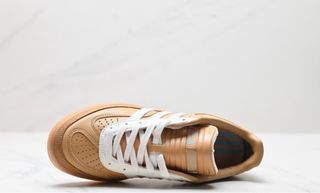 Zapatos de la marca Adidas en tonos marrones y blancos - Diseño deportivo. - Cordones blancos. - Detalle de las tres franjas.