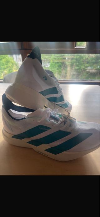 Zapatillas deportivas Adidas Adizero Evo SL en talla 43. Diseñadas para ofrecer rendimiento y comodidad. - Nuevas sin estrenar, con etiquetas. - Combinación de colores blanco y rojo. - Modelo Adizero Evo SL.