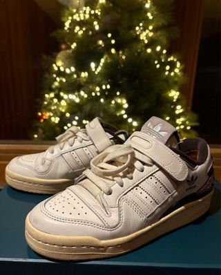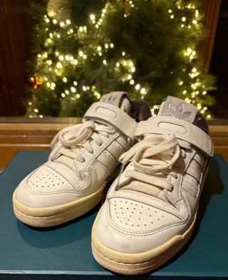 Zapatillas Adidas Forum Low en talla 39. Combinan blanco y verde. - Diseño clásico de Adidas. - Cierre con cordones. - Logo de Adidas en el lateral y la lengüeta.