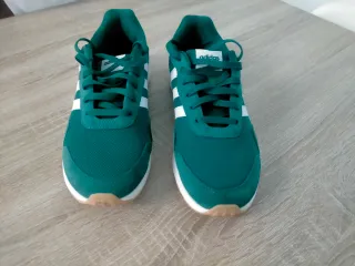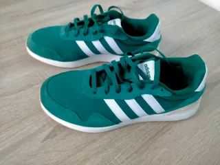 Zapatillas deportivas Adidas Run 60s 4.0 en color verde. Puestas solo una vez. Son regalo y me apretan. Por eso la venta - Diseño deportivo. - Tres rayas blancas características de la marca.