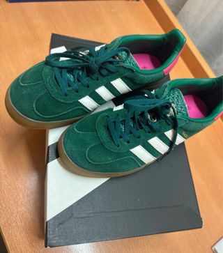 Zapatillas Adidas Gazelle en color verde con detalles en rosa. Nuevas sin etiqueta!!