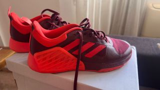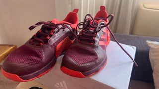 Zapatillas deportivas Adidas Drop Set en tonos morado y rojo. Perfectas para entrenamientos. - Diseño deportivo. - Combinación de colores vibrantes.