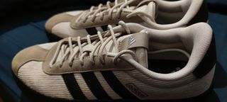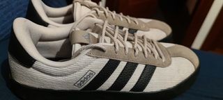 Vendo un par de zapatillas Adidas. Son de color blanco y marrón, con un diseño clásico y elegante. - Están en muy buen estado. - Ideales para el uso diario.