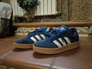 Zapatillas Adidas Samba XLG en color azul con detalles blancos. Suela de goma. - Diseño clásico. - Cordones. - Logo de Adidas en la lengüeta y el talón.