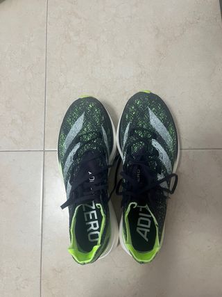 Zapatillas voladoras Adidas Adizero Adiós 8 talla 42 2/3. Las he usado en varios entrenamientos de series cortas pero no tienen más de 5 km de uso. Tengo la factura de compra, compradas en Deporvillage. Las vendo porque me he pasado a usar siempre zapatillas de clavos para la oposición a bombero.