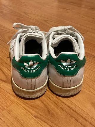 Zapatillas Adidas Stan Smith con parte trasera verde. Están bastante usadas, pero las vendo por si alguien quisiera restaurarlas