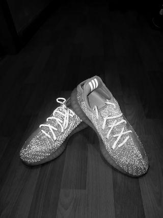 Zapatillas deportivas Adidas Yeezy Boost 350 V2 en tonos grises y blancos. Un diseño moderno y cómodo. - Parte superior de tejido Primeknit. - Suela de goma. - Cierre con cordones. -Muy poco uso -La vendo porque ya no calzo ese número
