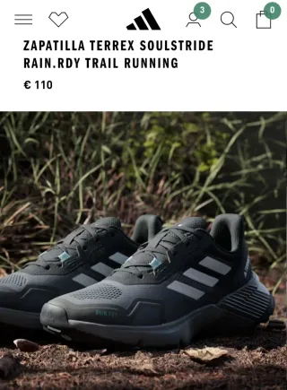 ✅ Marca adidas ✅ Talla : 37.3 ✅ Originales 💯 Las zapatillas que te interesan son las adidas Terrex Soulstride RAIN.RDY Trail Running, un calzado diseñado para ofrecer comodidad y protección en terrenos de montaña. Impermeabilidad: Equipadas con tecnología RAIN.RDY para mantener los pies secos en condiciones húmedas o embarradas. Tracción: Cuentan con una suela de goma Traxion, que proporciona un agarre óptimo en múltiples direcciones tanto en senderos como en asfalto. Amortiguación: Mediasuela ligera diseñada para brindar confort en carreras de montaña de larga distancia. Dimensiones: Tienen un drop de 9 mm (talón: 29 mm / antepié